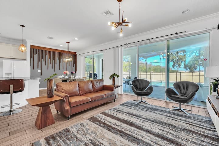 Experience our lakefront, Disney and Universal themed 8-bed, 5-bath home in Sonoma Resort, perfect for families and large groups. Sleeps 18 and features a private pool, themed rooms, and a full kitchen. Enjoy resort amenities including a clubhouse, fitness center, trails, and resort pool. Minutes from Disney World, Universal, SeaWorld, The Loop, outlets, golf, and top Orlando attractions!